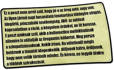 Autók. Régiek. Elölről, ahogy az igazolványképet készítenék róluk. Egyik bamba, a másik dögös, a harmadik igéz, emez meg látod, téged stíröl, nem viszed-e el egy körre. És mind, mind szinte megszólal, téged kér, vigyed ki innen! És nini, az első kettő ismerős... A többi nem lesz az.