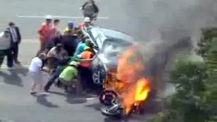 Totalbike baleset 2011. 09. 15. 13:27 Lángok közül mentették meg a motorost Életüket kockáztatva emeltek meg egy lángoló autót tucatnyian az Egyesült Államokban, hogy kiszabadítsanak egy kocsi alá szorult motorost.