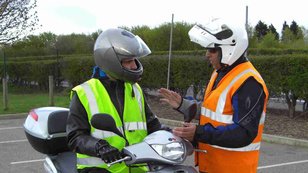 Nemsokára vizsga. Végre. Addig is egy kis forgalomban vezetés. Hideg reggelen találkozás a tanpályánál. Ketten megyünk, elöl egy váltós motorral, hátul én. Kiosztják a fülhallgatókat, menjünk, ha gond van üssük meg a bukónkat, kanyarban indexeljünk, nézzünk hátra, ha balra kanyarodunk húzódjunk be a sávunk bal szélére.