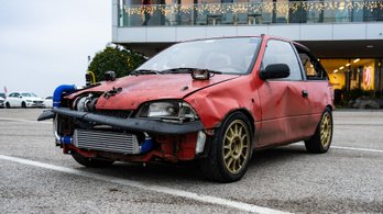 Aki ismeri Ámon Olivér munkásságát, vagy a driftre épített Mercikkel, vagy a Suzuki Swiftekkel köti össze. Viszont ő is úgy van vele, hogy az igazi örömet az az autó adja, amit nem kell félteni, és a 68 lóerős öreg-Swift ilyen volt. Illetve, nem volt, most is ilyen, csak most már egy 200 lóerős, etanollal itatott turbómotor viszi, és hát nem az esztétika volt az első szempont az építés alatt. Ellenben az eredmény démoni. Nagyon.