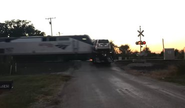 Videón, ahogy egy autószállító kamionba rohan egy vonat