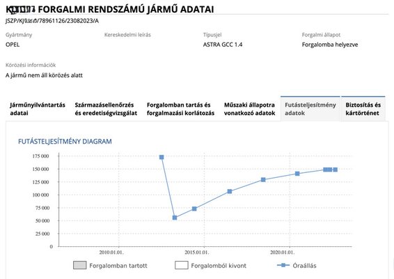 További rossz hír, hogy az Astra kilométerfutását még 2013 környékén manipulálták, vagyis visszatekerték azt több mint százezer kilométerrel. Ez nem tűnik elírásnak, hiszen a JSZP-ben elérhető fényképeken egyértelműen látszik a korábbi magasabb, majd a későbbi alacsonyabb állás.