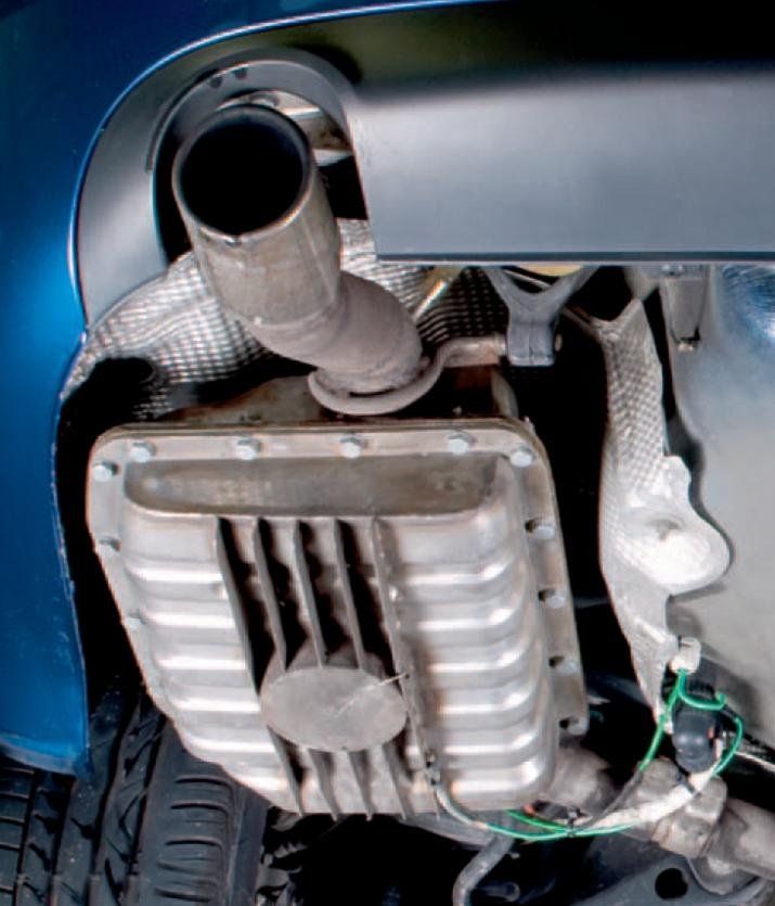 A német mérnökök nemes egyszerűséggel mindent kidobáltak a kipufogórendszerből: a középső dob helyén csövet, a hátsó dob helyén pedig... mit szépítsük: egy köcsögöt találunk. Persze lehet árnyalni a dolgot, hogy sárgadinnye nagyságú, csaknem kerekded edény, rövid nyakkal, de akárhogy is nézzük, ez egy köcsög.