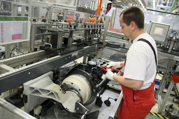 A gyári séta során két gyártósort néztünk meg: a már említett V6 TDI-ét, illetve az 1,8 és 2 literes TFSI-két – ez utóbbit a 2.0 TFSI FlexiFuel etil-alkoholos motor tiszteletére. Azt is megmutogatták, hogy mi a különbség a normál benzines TFSI-hez képest. Például, a nagyobb nyomások miatt a hajtórúd, a csapágyak, a kisszem persely módosult, illetve a szelepülékek anyaga más. Továbbá, annak érdekében, hogy a motor nagy hidegben is be tudjon indulni alkohollal, a szívórendszer kapott egy ötödik befecskendező fúvókát. Mínusz 25 fokos külső hőmérséklet mellett a motor az első két másodpercben valójában nem közvetlen befecskendezésesként üzemel, hiszen ilyenkor ez a hidegindító fúvóka dolgozik.
