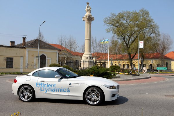 Elsőként – talán kedvcsinálónak – egy Z4 sDrive 35is-t próbálgathattam, az oldalára egy kis német humorral felragasztották a hatalmas EfficientDynamics feliratot. Az egész tesztflottát ezzel díszítették, nem hagyhatták ki a kis roadstert sem, mégis mókás a mentsük meg a Földet üzenet az üresben forgatva hörgő-durrogó, duplaturbós sorhatoson. Nem részletezném a benyomásaimat, Tibby már leírta, milyen, és teljesen igaza van. Az is-jelzésű változat ugyan 34 lóerőt izmosodott, de nem hinném, hogy ez sokat változtatna az élményen.