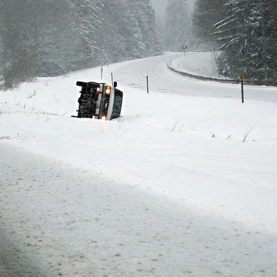 A kanyar külső ívén árokba borult autók komoly jelzésértékkel bírnak, de talán előbb olyan dolgok jutnak az ember eszébe, hogy tél van meg havas/vizes az aszfalt, esetleg csak olyan furcsán csillog. E jelek alapján ha pontosan tudni nem is, sejteni mindenképp lehet, hogy csúszós szakasz következik és érdemes csökkenteni a sebességet.