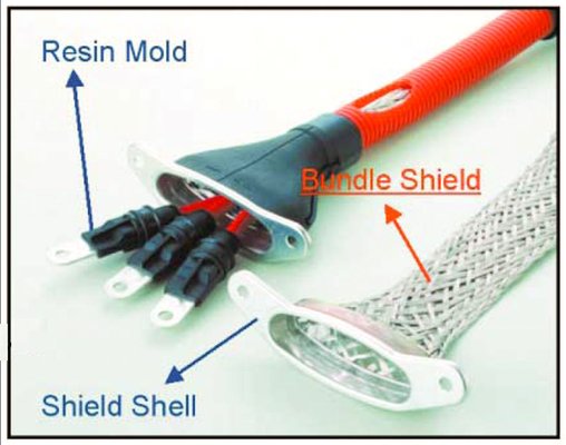 A hibridekben magasabb feszültségszinten, közel hasonló áramerősségek mellett zajlik az élet, elvileg tehát magasabb lehet az elektromágneses sugárzás is. Ugyanakkor a hibrid- és villanyautókba beépített nagyfeszültségű kábelek szinte kivétel nélkül árnyékolt kivitelben készülnek. Ennek oka elsősorban a biztonság: ha valamilyen mechanikai igénybevétel (baleset, kőfelverődés, hóbucka) miatt a kábel megsérül, a nagyfeszültségű vezetéket körülölelő drótharisnya jó eséllyel rövidzárlatot okoz, ami még mindig sokkal jobb, mintha a sérült szigetelésen keresztül a több száz volt az utasok, vagy bárki más kézzel fogható közelségébe jutna.
