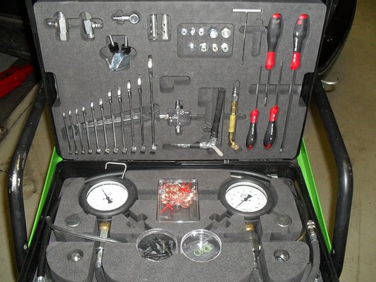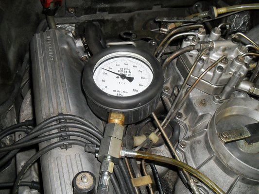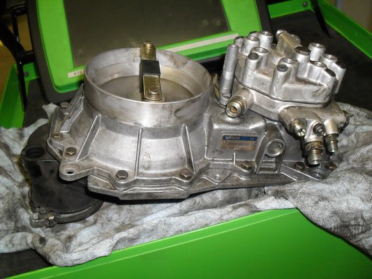 A teszt lényege, hogy üzemi hőfokra melegítik a szabályozót, és a nyomásmérőn leolvassák az értéket. Beigazolódott a hiba, 4,4 bar nyomás helyett 3,6-nak kellene lenni itt, tehát az egység felújítandó. Aznap rengeteget tanultam. Ezúton köszönöm ezt Besze Sándornak és fiának, Gábornak! A felújított alkatrész beépítése után eszembe jutott, hogy néhány napja majdnem pofára estem egy bőröndben, amire valami ilyesmi volt írva: Bosch Jetronic-Set.