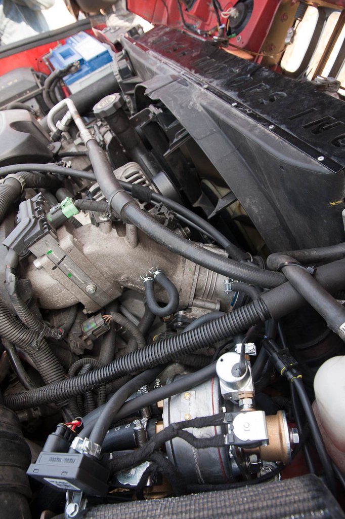 Az LPG eredetileg folyadék, tehát szükség van elpárologtatóra, ez gyakorlatilag olyan, mint a benzinmotoros átépítéseknél. Injektorból viszont csak egyre, maximum kettőre van szükség, a motor méretétől függően. Kell még pár szenzor, cső, vezeték, szintmérő, kapcsoló és a gázvezérlő elektronika. Ez utóbbi teljesen saját fejlesztés – ez a lelke a rendszernek. Természetesen szükség van gáztartályra is, amelynek méretét úgy érdemes belőni, hogy nagyjából akkor fogyjon ki, amikor a gázolaj is. Ez személyautónál könnyebb kérdés, kamionnál nehezebb.