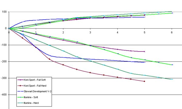 Egyértelmű, hogy nincs mindkét esetre megfelelő lengéscsillapító. Ha csak egy paramétert állíthatunk, mint például a Koni Sportnál a húzófokozat alacsony és magas sebességtartományát együtt, akkor egy aszfaltos karakteren belül hozzáigazíthatjuk a csillapítást a rugóhoz, de nem csinálhatunk belőle terepes futóművet. Mivel kis sebességnél is elég masszív ellenállást fejt ki, durvább úton nem tudná követni a kerék az útegyenetlenségeket, és több időt töltene a levegőben, mint a talajon. Fordítva, egy lágy, lineáris csillapítású, terepes futóművel bizonytalan, takonygumó érzésünk lenne száraz aszfalton.