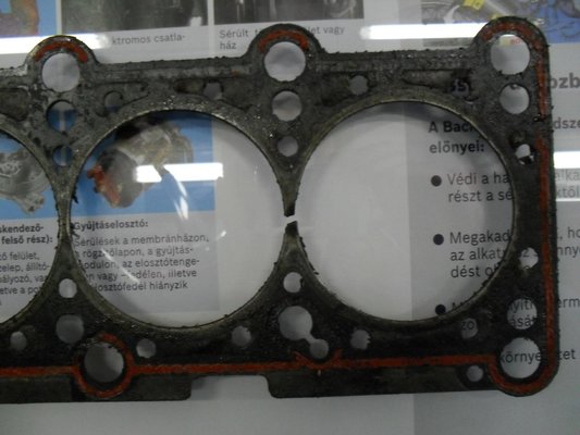 A gyújtórendszer vizsgálata nem vezetett eredményre. Annyi azonban kiderült, hogy a kettes és a hármas henger nem működik rendesen. Erre az utal, hogy az ezekhez tartozó gyújtókábelek lekötése után a motorműködés változatlan maradt. A következő evidens lépés a kompressziómérés volt. A vizsgálatot a kettes henger mérése után abba is hagytam, alig lehetett nyomást mérni. A hengerfej leszerelését a precizitásáról híres Laci kollégám végezte, ez most sajnos az én időbeosztásomba nem fért bele.