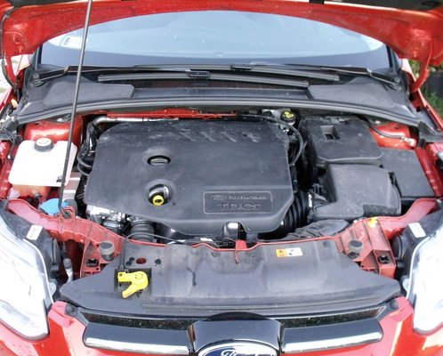 A színdarab pedig elkezdődik: magával ragadó és jó, de nem különösen izgalmas. A tesztautó 1.6-os dízele - a PSA konszern tervezése, de Ford üzemben gyártják – becsületes motor, egy Garrett GTC 12 44-es lélegezteti töltőlevegő-hűtőn keresztül. A turbómániások már láthatják a számozásból, hogy nagy tűzijátékra nem kell számítani egy ilyen kis változó geometriás turbónál, a cél nem is ez volt. Hanem egy alul is jól meginduló, takarékos, környezetbarát 115 lóerős motor, és ez sikerült. 1500-as fordulat alatt kicsit dízelesen remegtet, ami nem annyira a motor, mint a motortartók és a kettős tömegű lendkerék gyengesége, de 1500 után kisimul és elfogadható erővel tol. Nem érdemes azonban 3000 fölé forgatni, mert itt már nem lesz erősebb, nem jön semmi nagy hátbarúgás, csak a dízeles morgás lesz erősebb, úgyhogy jobban járunk, ha szúrjuk a következőt fokozatot.