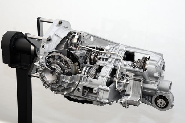 Kétféle váltót lehet rendelni a kocsihoz, az egyik egy hét sebességes mechanikus, a másik egy szintén hét sebességes, duplakupplungos szerkezet. A mechanikus váltó legnagyobb különlegessége a fokozatok száma. Ez az első, szériaautóba szerelt hétsebességes manuális váltó, ezért új, megoldandó probléma volt a félreváltás elkerülése. Mert ha véletlenül valaki rendeltetésszerűen akarja használni a 911-esét, a századmásodpercekért csatázva előfordulhat, hogy negyedikből ötödikbe tolva a váltókart, kicsit megszalad a keze, és egy rossz mozdulattal hetedikbe vált. Ez persze a mechanikának nem árt, de a köridőnket csúnyán elronthatjuk vele. Az ilyen szégyent elkerülendő, beépítettek egy egyszerű, de elmés mechanikát, ami csak ötödikből vagy hatodikból engedi a váltókart a legmagasabb fokozatba tolni. Egyébként meg pályán semmi szükség a hetedikre, mert az igazából egy kímélő fokozat, a csúcssebességet hatodikban éri el az autó.