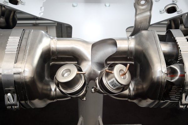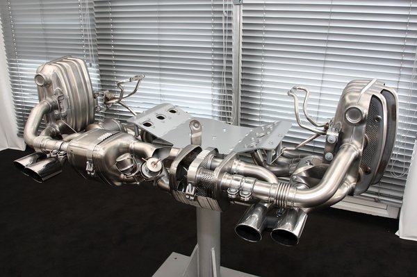 Az, hogy egy Porsche kipufogó rendszere nem egy szimpla, lemezekből és patentívekből összehegesztett tákolmány, mindenkinek evidencia. Talán azon sem lepődünk meg, hogy a Carrera S-nél alapáras rendszerben csappantyúkkal lehet a kipufogót a szükséges módon hangolni. Bár a sportgomb megnyomásakor a gázok más, rövidebb utat járnak be, mint egyébként, azt mondják, ez teljesítményváltozással nem, csak zaftosabb hanggal jár. Hogy a Porschénél mennyire fontos a kipufogórendszer, mi sem bizonyítja jobban, mint a tény, hogy bár a szériagyártást külsős cég végzi (az állófűtéseiről jól ismert Eberspächer), a fejlesztés csak és kizárólag a weissachi központban zajlik. Miközben az elejétől a végéig rozsdamentes acélból készült, kifinomult technikával készült rendszert nézegettem, felmerült bennem egy kérdés: a szemléltetési célból felvágott dobokból vajon esztétikai okokból szedték ki a gyapotot? Kiderült, sosem volt bennük, a kipufogó úgy tudja teljesíteni a vonatkozó normákat, hogy a rozsdamentes acél labirintuson kívül semmi mást nem építenek be. Igaz, ennyi rozsdamentes anyagból egy kisebb üzemi konyha teljes berendezése is legyártható lenne.