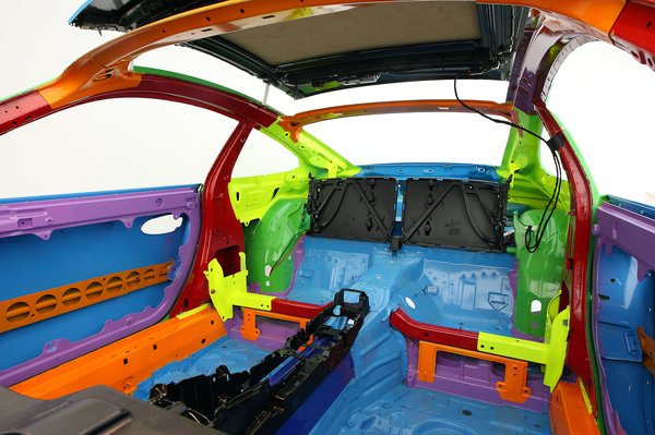 A különböző alapanyagokat nem lehet csak úgy összehegeszteni, ezért csavarok, szegecsek és szerkezeti ragasztók (Strukturklebstoff) segítségével lesz a sok elem karosszériává. Mivel a padlólemez, illetve az ajtók, fedelek alumíniumból vannak, az acéllal találkozó felületek között a ragasztó nem csak a szükséges kötésért, de a két anyag közti szigetelésért is felel, így akadályozza meg a galvánkorróziót. Hogy mennyire hatékony az eljárás a hegesztéshez hasonlítva? A karosszéria dinamikus torziós-merevsége húsz százalékkal nőtt az elődmodellhez képest, olyan rossz nem lehet.