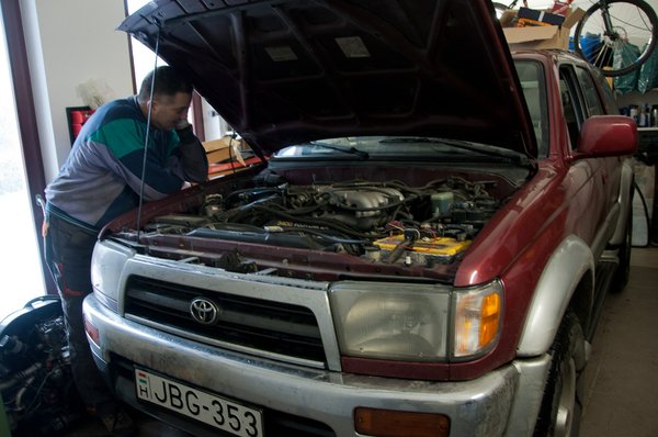 Motordokival álltunk neki beépíteni a készüléket Winkler Tehenébe. Azért választottuk a Toyota 4 Runnert, mert egyrészt évekre visszamenően ismerjük a fogyasztását, másrészt ha csak öt-tíz százalék csökkenést sikerül elérnünk, az a 14 liter körüli száz kilométeres adaton könnyen mérhető.