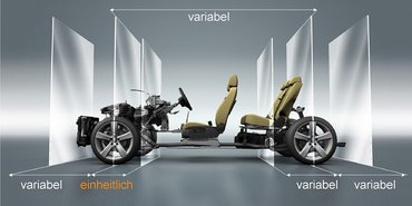 A karosszéria esetében a korábbi azonos platformra építéssel ellentétben ez az MQB nagyfokú szabadságot garantál. Az egyetlen adott és nem változtatható méret az első tengelyvonal és a pedálok távolsága, minden más, az első túllógástól a tengelytávig olyan formán változtatható, hogy a présgép azonos tud maradni, de a különböző modellekhez adaptálható. Így lesz még közelebbi rokon a következő Passat a hetes Golffal, azonban méretük természetesen eltérő, csak a keresztben lévő motor távolsága a tűzfaltól lesz azonos.