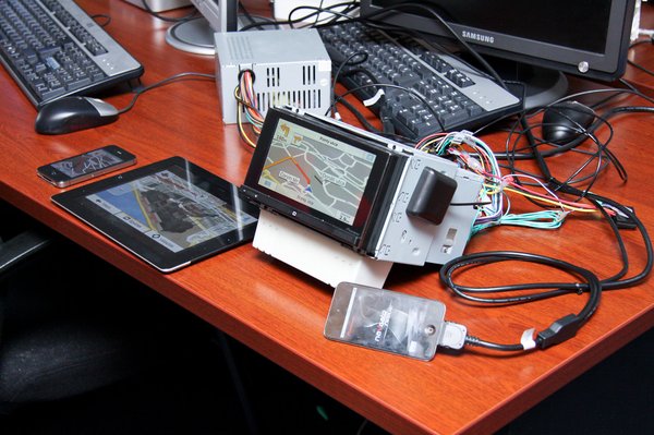 Azt azért megkérdeztem, hogy mindez szép és jó, de nem lenne-e egyszerűbb az okostelefont használni navigációra, ha már úgyis egyre több embernél van ott. Az autó képernyőjén pedig elég lenne csak megjeleníteni. Érdekes módon nem, hisz senki sem érdekelt benne túlzottan, bár voltak ilyen olcsó alkalmazások is, amelyet később meg is mutattak. A fejegység érintőképernyőjén jelent meg a térkép, sőt, innen lehetett kezelni, holott a navigáció iPhone-ról futott. Azonban az autógyárak nem nagyon lelkesednek az ilyesmiért, mert egy csomó problémát is felvet, és pont az autóval történő kommunikáció miatt sem előnyös. Meg hát az NNG sem, hiszen abban érdekelt, hogy minél több licencet adjon el.