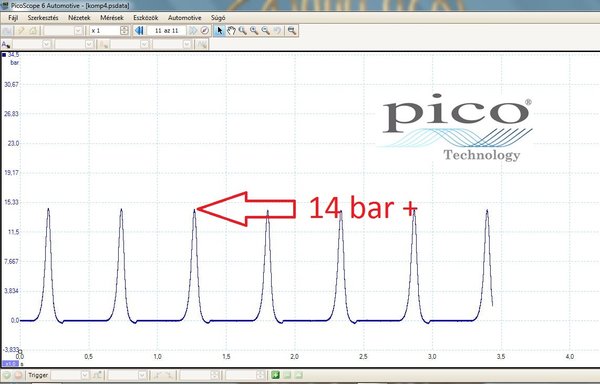 Ezzel a kis kütyüvel akár járó motornál is mérhetünk kompressziót, ami azért jó, mert közelebb van a valóságos motorüzemhez, mint a hagyományos kompressziómérés esetén. Csodálatos szerkezet. Szerencsére kevés műhelyben használnak Pico Scope-ot, így a hobbim kitöltheti a teljes munkaidőmet.
