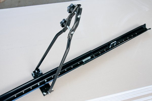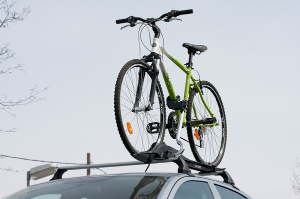 Van persze roppant elegáns módja is a kerékpárok felemelésének: a daru. A speciális kerékpárliftet mindössze egyszer kell a bicaj méreteihez beállítani. Ez pici macerás, de ha egyszer összejött, az autó mellé állva csak be kell akasztani a kormányba és az ülésbe az emelőrudat, és a rugós mechanizmussal légies könnyedséggel emelkedik a tetőre a bicaj. Persze ez is márkás cucc, az ára is ennek megfelelő. Egy dolgot fontos megemlíteni róla: ilyen elegáns kerékpáremelőből csak kettő rögzíthető a tetőtartón.