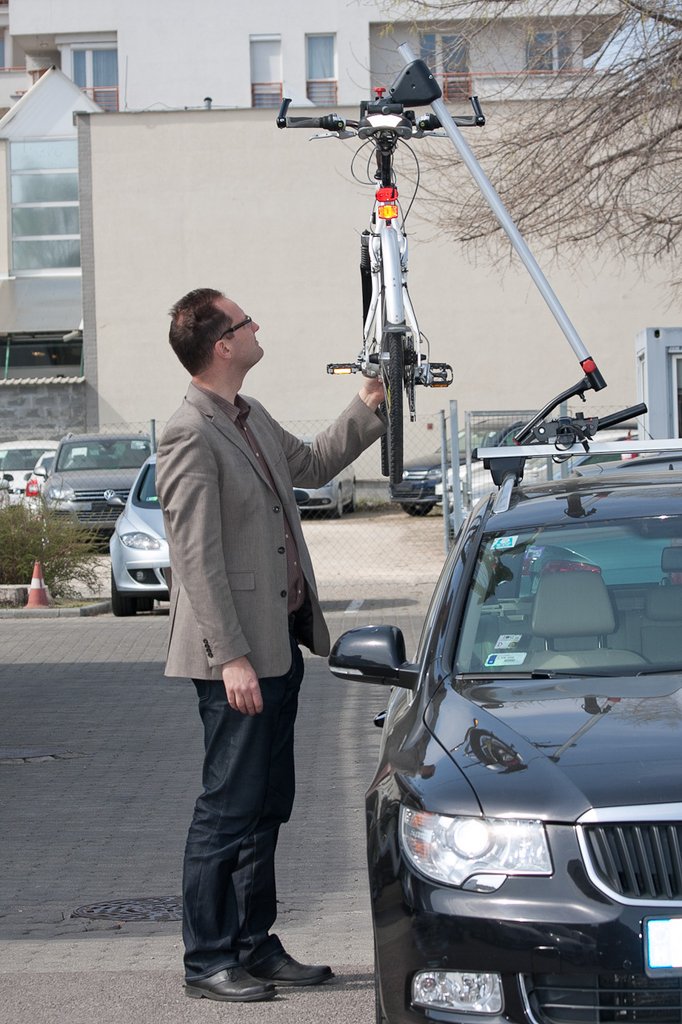 Persze ehhez elég nagy járműre van szükség. Hol vannak már a daliás idők, amikor egy Wartburg csomagtartójába simán bepakolt az ember egy 28-as bicajt a Robi kapa mellé! Oké, kilógott, de akkor is. A mai kocsiknál szinte biztos, hogy a csomagtartót bővítenünk kell, azaz előre kell hajtogatni egy-két ülést. De magányos farkasok egy kombi vagy egy középkategóriás ötajtós birtokában simán elszállíthatnak egy-két kerékpár mellett akár egy utast is, kipróbáltuk egy Superb kombin, és jó volt. A kisebb autóknál, amelyeknek így is rövidebb a raktere, megoldás lehet az első kerék kiszerelése.