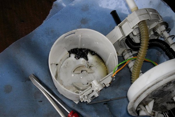 Ezt követően tulajdonképpen megfürödtem gázolajban. A műhelyem beindítása nem úgy történt, hogy egyszer csak lett minden, ami a munkához szükséges, így például még emelőre sem futotta. Sokuknak talán szánalmas is a látvány, de én garantáltan annak éreztem a pillanatot, amikor elöntött az olaj. A munka során ez volt az a pillanat, amikor kicsit ideges is lettem. Sebaj. Kiszereltem a tankból az üzemanyagbemérő-egységet és szétpattintottam. A látvány magáért beszélt.