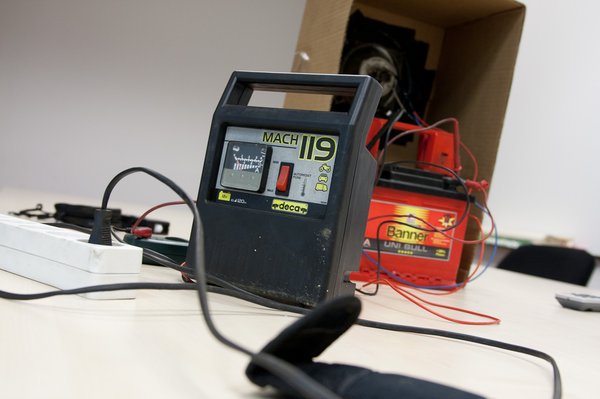 A teszt mérőeszközei és felszerelései a következőképpen alakultak. Szereztünk a fotós fénymérőt (gyári szám és típus a szerkesztőségben), építettünk egy teszt állványt, ami egy kartondobozba szerelt Golf fényszóró volt. Abból is egy korai, 1976-ös Bosch modellt, mert izzófoglalata nagyon pontos és bajonettes rögzítésű. Könnyű cserélni az izzókat és a pozíciójuk mindig azonos, nem lehet elrontani. Foncsora fém, nem műanyag és a vetítési képe szabályos és pontos, kevés szórt fénnyel. A tápáram egy 55 Ah-s akkumulátorból jött, amely folyamatosan rá volt kötve egy töltőre, hogy a kapocsfeszültsége a terheléskor azonos tudjon lenni. Az automata akkumulátortöltő maximálisan 8 A-t tud leadni. Mivel azonban az akku jó állapotú és jól feltöltött volt, így az jól pufferelt, nem kellett nagy áramerősség a szinten tartásához.