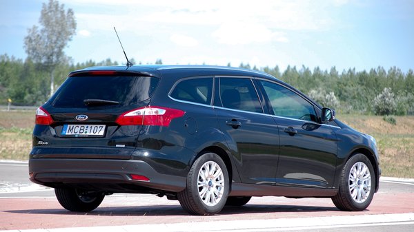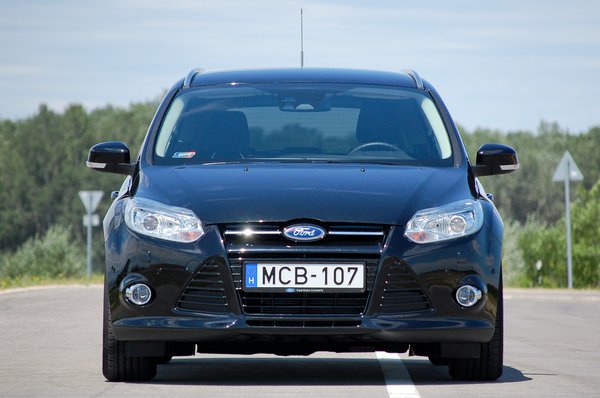 A gázpedál érzékeny, tisztességesen meglódul a kombi Focus a kis motorral, és egészen 4000-ig az égvilágon semmiről sem tudjuk, hogy háromhengeres. Azt meg, hogy csak ezres, végképp nem. Aztán a három napig tartó csoda elmúlik, 4000 felett bár megy a gép, de megjön a háromhengeres jellegzetes hangja, valamint kicsit elfogy a szusz, a nyomatékból autózás erőlködősbe vált. Ha jellemeznem kellene a motorkarakterisztikát, inkább egy nyomatékos, kicsit régimódi kétezreshez vagy kettőfeleshez hasonlítanám, kimondottan nyomatékos és rezgésmentes a kis huncut. Soha nem gondoltam, hogy ezt fogom írni, de nagyon tetszett. Több mint 600 kilométert autóztam vele, mindenféle úton, városban, autópályán, normális tempóban, és a tesztfogyasztás 5.8 liter volt 100 kilométerre. Simán megy 180-at, de ez egy 125 lóerős áramvonalas autótól nem nagy szó, egy ezrestől már igen.