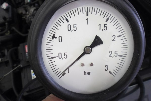A hibatároló lekérdezése nem sok eredményt hozott. A befecskendezőket napokkal azelőtt újították fel a Filep Diesel Centerben. Mivel magam is hozzájuk járok, ha dízelbefecskendezőt újíttatok fel, és eddig nem volt velük gondom, az ő munkájukat kizártam, mint hibalehetőséget. A hiba jellegéből adódóan amúgy is a feltöltőnyomásra, jobban mondva, annak hiányára terelődött a gyanúm. Egy műszerrel megtett próbaút után igazolódott a sejtésem: nagyon nehezen emelkedett a turbónyomás.