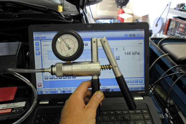 A pumpával előidézett nyomást össze kell hasonlítani a vezérlőegységből kiolvasott értékkel. A kettő tökéletesen megegyezik, tehát a töltőnyomás-érzékelő jó.