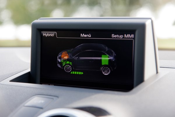 tök más konstrukció. Először is a belső égésű motor az orrában van, olyannyira, hogy egy egyfokozatú sebességváltón keresztül közvetlenül is képes a kereket hajtani. Ez azonban nem Wankel, hanem hagyományos dugattyús motor, három hengerrel, amit a kétliteres TSI-ből nyiszáltak le. A teljesítménye 130 LE (95 kW). Rajta van ezen kívül két villanymotorja, az egyik alapvetően indítómotorként és generátorként működik (50 kW, 210 Nm), míg a másik (85 kW, 250 Nm) a fő hajtó villanymotor. Ez működik olyankor, amikor tisztán elektromos módban halad a jármű. Ha sportos üzemmódba kapcsolunk, a benzinmotor azonnal beindul, de semmit sem hallani belőle. Hihetetlen, vajon kiöntötték bitumennel az orrát? Ezt egyelőre nem tudhattuk meg, tilos volt felnyitni a motorházfedelét. Az A1-es villanymotorral is igen jól gyorsult, hivatalosan 9 másodperc alatt van százon.