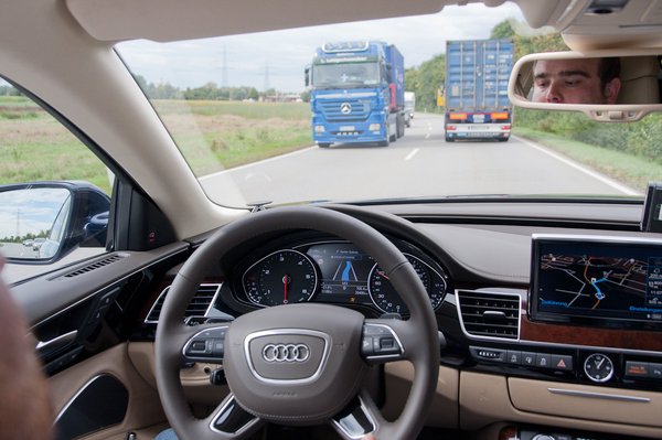 A hatás ugyanaz, mint mondjuk egy Wartburg vagy egy Trabant esetében, ott ezt a funkciót a szabadonfutó látta el, csak épp járt a motor alapjáraton. Viszont nulla volt a motorfékhatás. Az Audinál ugyanez kikapcsolt motorral történik. Mindenesetre furcsa érzés, mert ha egyenletesen akarok haladni, akkor nyomom a gázt, ha lassulni szeretnék, akkor meg elveszem. Ettől még nem zárom ki, hogy ez gazdaságosabb. Ha kell, egy pillanat alatt beindul a motor, amikor rálépünk a gázra. A lassításhoz egyértelműen fékezni kell, sőt, ilyenkor egy idő után beindul a motor, hogy még motorfék is legyen. Aztán ha megállunk, ismét leáll, hisz start-stop...fura. A prototípus kicsit még rángatósan működött, de nem zárom ki, hogy ez a funkció hamarosan megjelenik a szériagyártásban, bár azt nem állítanám, hogy várom ezt.