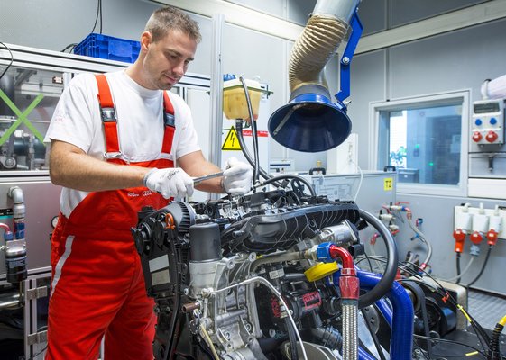 Na de mit fejlesztenek magyar fiúk az Audikon? Tíz dinamikus motorfékpad sorakozik a földszinten, és még kettő, amit kimondottan súrlódásmérésre használnak. Az egyetemen van a legérdekesebb, amely úgynevezett online kopásmérésre alkalmas. Ebből némi logikával ki is következtethetjük, hogy túlnyomórészt a motorok sorozatgyártásával szorosan összefüggő feladatokkal foglalkoznak, illetve új termékek felfutásának támogatásával. A kopásmérés speciális terület, érzésem szerint az a legkomolyabb kutatási projekt, de a gyáriak azért még a nyílt napon is ügyeltek arra, hogy megmaradjon a kellő homály azzal kapcsolatban, pontosan mi is folyik itt. A járműfejlesztő részlegen pedig a kétliteres TFSI illesztését az Amarokhoz említették példaként, vagyis a jól csengő Derivatentwicklunggal, beépítési feladatokkal töltik a mérnökök idejük nagy részét.