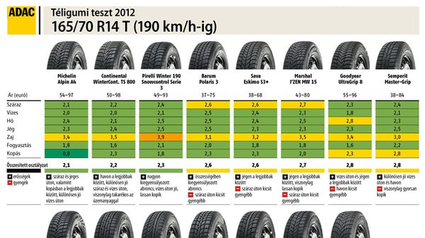 Akit az idei teszt nem talált el méretben, az ADAC ajánlása alapján plusz-mínusz egy mérettel kisebb vagy nagyobb abroncsra is használhatja az eredményt, vagyis a 165/70 R14-es teszt 155/70 R14-től 175/70 R14-ig érvényes. Peresebb vagy más átmérőjű gumik esetén viszont érdemes megnézni a tavalyi, tavalyelőtti teszteket, ott más méreteket is meg lehet találni.