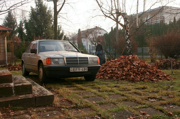 Megint egy szombat, megint egynapnyi keresés, mert az állólámpásnak tényleg mennie kellett. Március eleje volt, de a változatosság kedvéért szakadt a hó, egész Budapestet tizenöt centis, fehér takaró borította. Megnéztünk valami kívül és belül egyaránt zöld, nullaextrás 124-est a Fradi-pálya mellett (eredetileg a német postán lehetett főnöki kocsi). Sajnos volt már előttünk magyar tulajdonosa, aki helyben hagyta – tehát elléptünk. Jó, jó, a mi Mercink is mutatta az erős használat jegyeit, de azon azért volt fék, futómű, belül sem laktuk takarítatlan vágóhíddá.