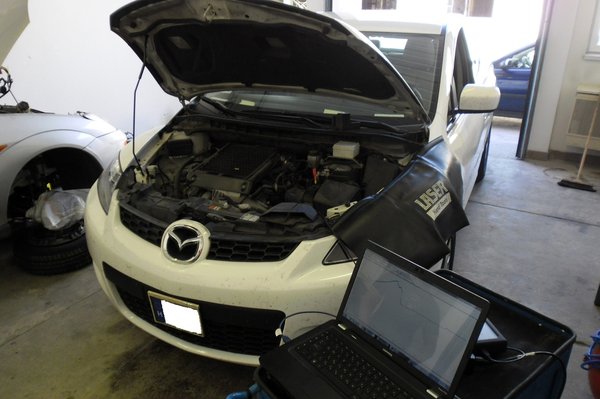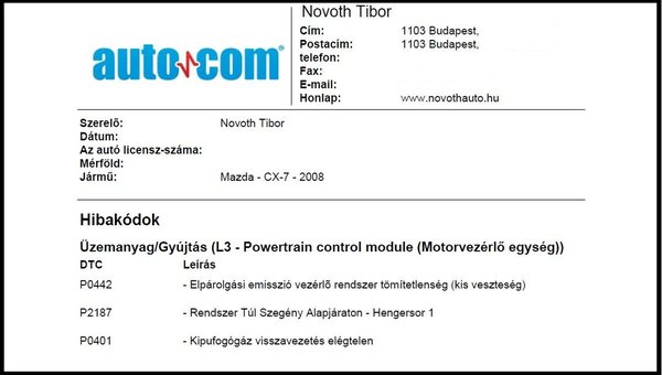 A következő beteg egy Mazda CX-7, ez is a közvetlen benzinbefecskendezéses fajtából. A hiba: világít a check engine. Telefonon javasoltam az ügyfélnek, hogy inkább márkaszervizbe vigye az autóját, mert az én tudás-műszerezettség-adatbázis triumvirátusomat nem tartottam megfelelőnek az autó javításához. A válasza az volt, onnan jön.