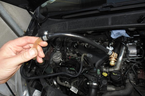 Ez a motor a PSA-konszerntől származik, Siemens közös nyomócsöves dízel-befecskendező rendszerrel ellátva. Ennél a típusnál nincs az üzemanyagtankban elektromos szivattyú, a rendszer üzemanyag-ellátásáról a nagynyomású szivattyú házában helyet foglaló, úgynevezett előszállító szivattyú gondoskodik. Mivel a tank és az említett egység között legalább négy méter cső és egy gázolajszűrő található, logikus azokat ellenőrizni vákuumpumpával. Itt nem találtam hibát, a gázolaj szabadon áramlott.