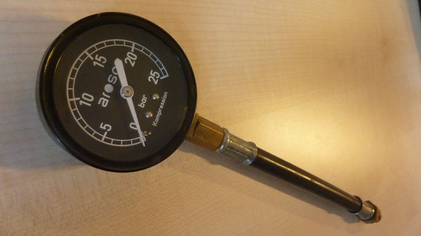 A műszer csatlakoztatása után kezdődhet a mérés. Az indító motorral forgatni kell a motort, és amikor a mutató már nem tud magasabb nyomásértéket regisztrálni, azt tekintjük a maximális kompresszió-végnyomásnak az adott hengerben.