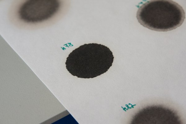 A koromtartalom vizsgálata ehhez képest egy könnyen felfogható dolog: egy itatóspapír-szerű papírra csöppentenek egy kis olajat, majd egy optikai elven működő gépbe helyezik, amely kiírja, hogy a minta hány százalék kormot tartalmaz. Jellemző módon egyébként a laborvezető ránézésre mondott egy százalék-értéket egy mintára, és a gép pont ugyanazt mutatta. Hiába, az évek és a rutin.