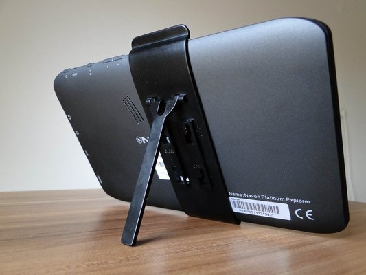 A táblagéphez csomagolnak egy felpattintható kitámasztót is, amely filmnézéshez kiváló. Ehhez csatlakoztatható az a tapadókorongos kar, ami meglepetésemre pont olyan, mint a sima, ötcollos Navon (N760) navigációé. Éppenséggel elbírja a 33 dekás cuccot is, de alaposan meg kell húzni a gömbcsuklót, hogy böködéskor ne mozduljon el. Érzésem szerint a kar lehetne hosszabb, ha erősen döntött szélvédőjű kocsiban akarják használni. A tesztpéldány karja pár tizedmilliméteres kotyogással csatlakozott a bölcsőhöz, ez már azt jelentette, hogy amikor a tablet szélén kellett valamit böködni, már lötyögött a táblagép.
