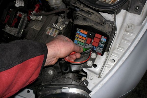 Mivel az autóba utólagos indításgátló berendezést szereltek, felhívtam az ügyfelet, hogy valószínűleg az hibásodott meg, ugyanis ennek az áramkörnek a megszakítása a legtipikusabb ilyen védelem beépítésekor. Véleményem szerint ennek nem sok értelme van, mert ahogyan én áthidaltam ezt egyszerűen néhány méter vezetékkel, azt valószínűleg az autótolvaj is megtenné. Szerintem érdemesebb másik, kevésbé tipikus áramkört megszakítani, ez lehetne akár a befecskendezők közös pozitív tápellátása. Ügyfelem elmondta, hogy a beépítő cég már nem elérhető, megszűnt. Mivel én magam nem vagyok járatos az autóvillamosságban a motortéren kívül, és az utastéri burkolatoknak sem vagyok nagy barátja, segítségül hívtam Ferit, egy volt kollégámat.