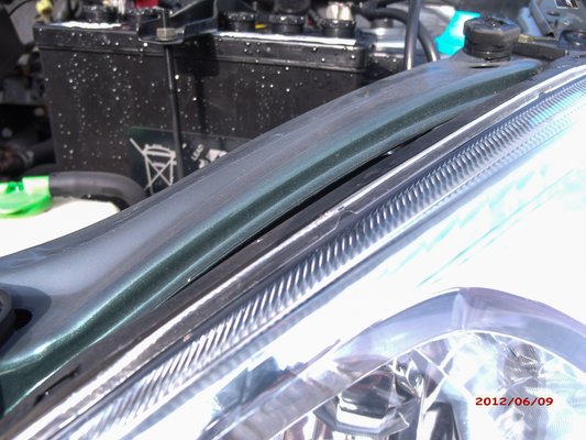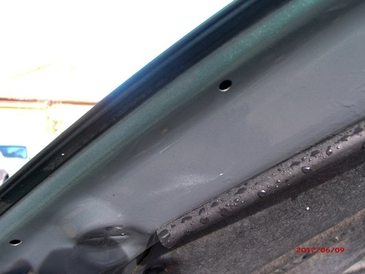 A zárhídon látszik, hogy a lehajtott géptető első pereme meddig takarta a felületet.