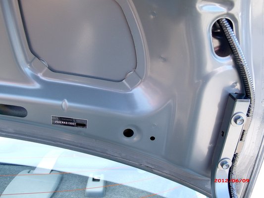A hátsó ajtók zárjánál, a belső kerékíven, mindkét oldalon megtalálható az alvázszámmatrica. Ha ez fényezve lett volna, akkor nem lenne ott, mert sokkal egyszerűbb a szimmetria jegyében leszedni a másik oldalon is, mint pótolni a hiányzót. Tovább haladva, a csomagtérfedelet kinyitva itt is nagy szürkeséget láthatunk, csak a széleknél látható a fokozatosan halványuló beporzás, és itt is megtalálható az alvázszámmatrica. Itt is nézzük meg a csavarok fejét.