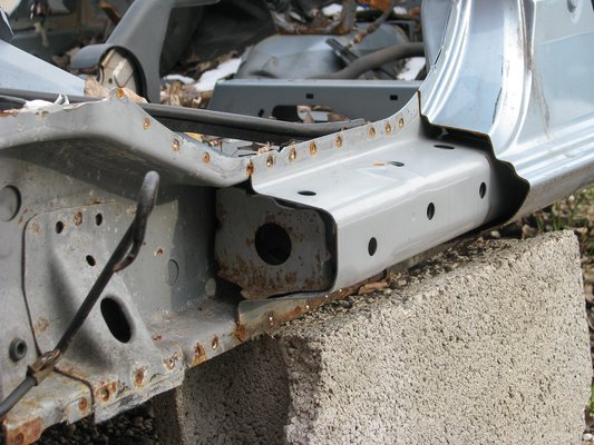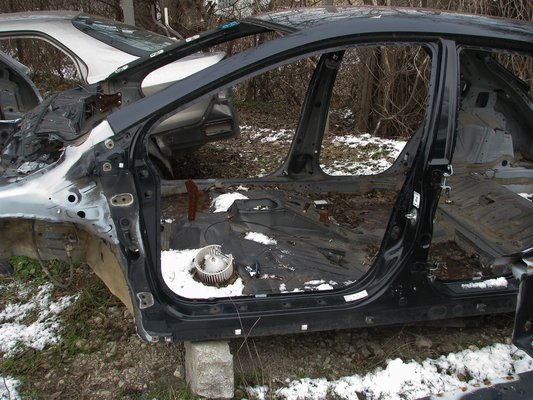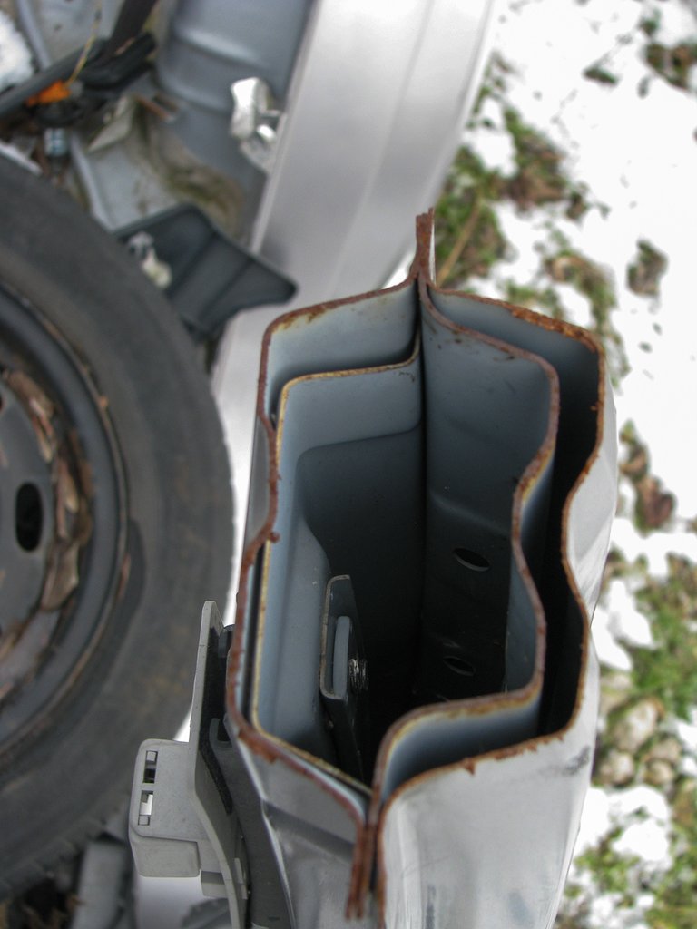Ezzel szemben itt egy 2006-os Honda Accord, erről már lefúrták a külső küszöb hátsó részét és a hátsó sárvédőt, ezért kitűnően látható a felépítése.