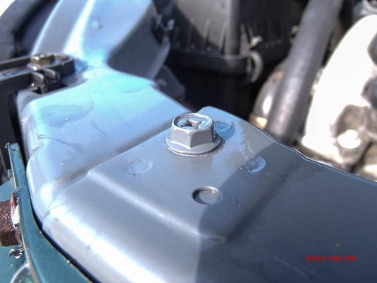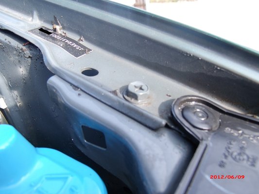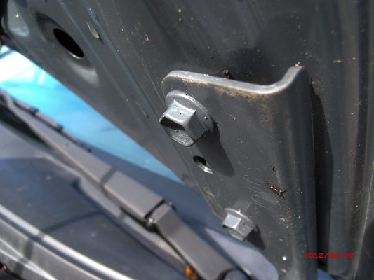 Továbbhaladva a motortérben látható, hogy a motorházfedél csavarjai érintetlenek.
