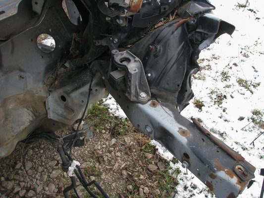 Közelről megnézve látszik, hogy a tűzfal, a padlólemez és a kardánalagút rogyott meg, oda vezetődött az ütés energiája.