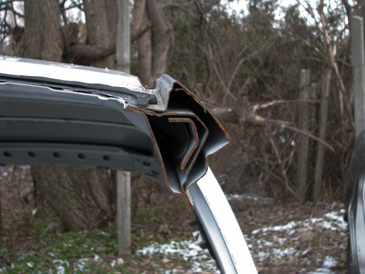 A fóti Honda-bontóban jártam Tamásnál, hogy lefényképezzem a szétvágott kocsikat. Itt van mindjárt egy 1996-os évjáratú Honda Civic küszöb. Jól látható rajta, amiről beszéltem: szinte csak egy cső az egész. Az oszlopok és a tetőkeret is hasonló kialakítású.