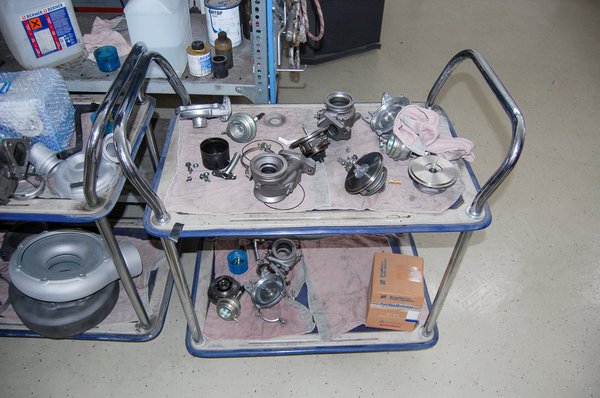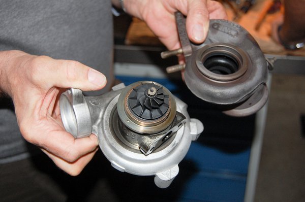 Amikor a Ferrykernél szétszedtünk hibafeltárásra egy majdnem új turbót, amelyet egy használt motorra szereltek, azonnal látszott a probléma. A tengely erősen kormos volt, a siklócsapágy hátulja és belső felülete is karcos, matt felületűre kopott. Egyik járókeréken sem látszott olaj nyoma, viszont az igen, hogy a kompresszor kereke már elérte a házat, amelybe bele is munkált, megkoptatta. Itt már költséges lesz a javítás, mert nem csak középrészt, hanem teljes házat kell cserélni, mert a kopott házban az új járókerék nagy hézaggal, rossz hatásfokkal üzemelne.