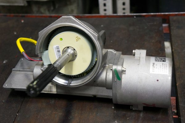 1) Kisebb autókban a legelterjedtebb rásegítés az, amikor egyszerűen villanymotort tesznek a kormány tengelyére valahol a vezető térde magasságában. Amerre a kormány tekeredik, abban az irányban segít rá a motor. Ez a motor általában fogaskerék-párral, néha igényesebb, golyópályás áttétellel kapcsolódik a kormánytengelyhez, de ez számunkra szinte mindegy.