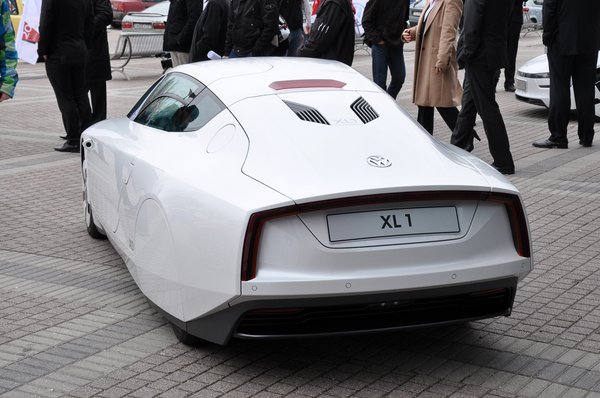 Ez is az egyik fő fejlesztési terület volt, az autóipar ezidáig a vízcsepp alakot tekintette a tökéletesen áramvonalas formának. A Volkswagen mérnökei inkább a pingvinnel szimpatizálnak, úgyhogy az XL1-et ez alapján tervezték meg. Lesimították az összes felületet, eltakarták a hátsó kerekeket, az autó szélességét is a lehető legalacsonyabbra vették, így az utasülés kicsit hátrébb került, a széles vállúak is elférnek majd. A teljes fenéklemez zárt, nincsenek visszapillantó tükrök, csak kamerák. A kamera képe az ajtókba integrált kijelzőkön meglepően jól látható, pedig ezt hosszas jogi csatározások árán sikerült csak kiharcolni.